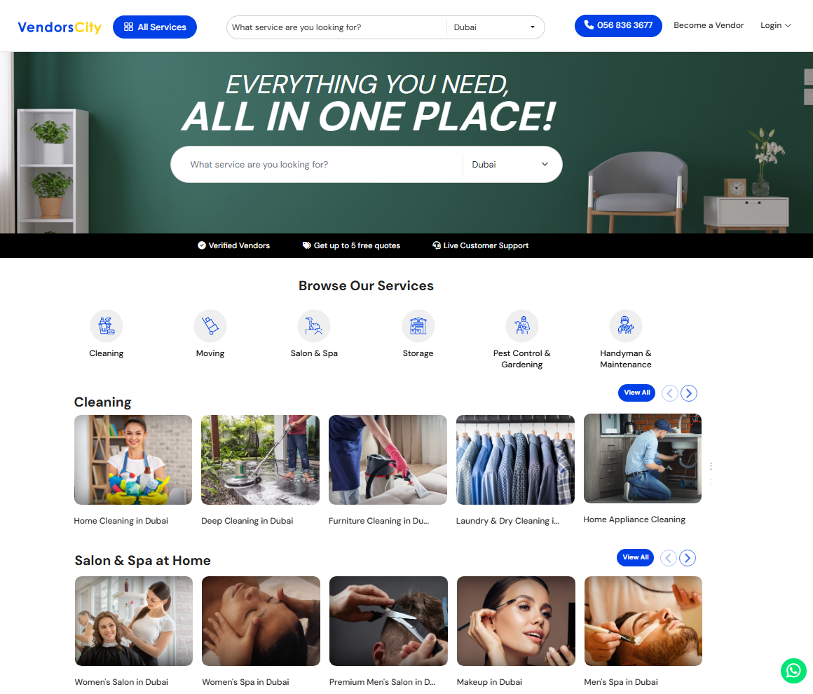 VendorsCity connects users with trusted Service providers across the UAE. Service like cleaning, moving, Handyman, Gardening etc.
